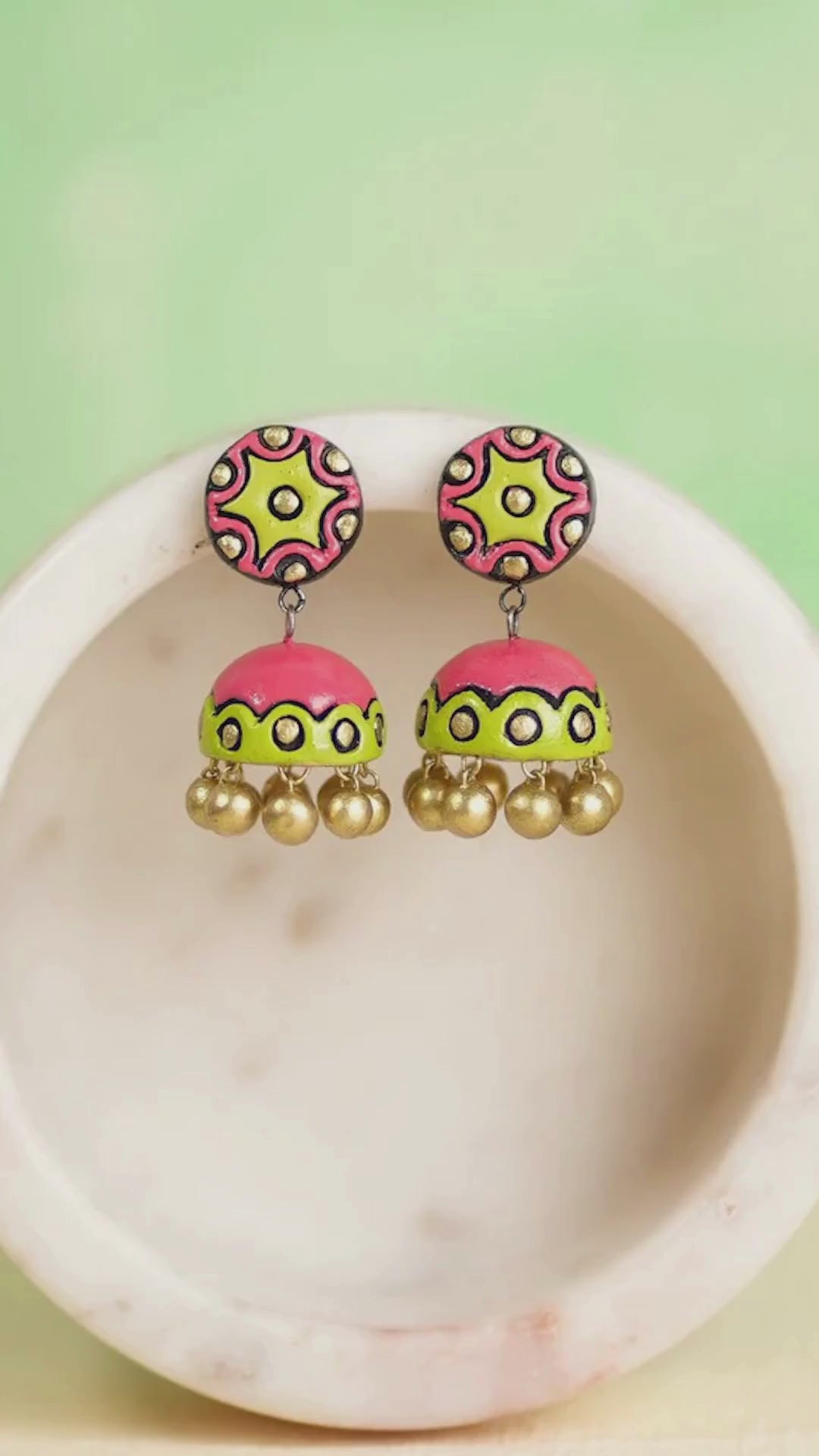 The Mini Dome Jhumkas are a charming, tinier version of our beloved Golden Dome Jhumkas! These delightful Jhumka earrings are lovingly handmade from natural terracotta, carrying the same classic golden sheen that catches the light beautifully.